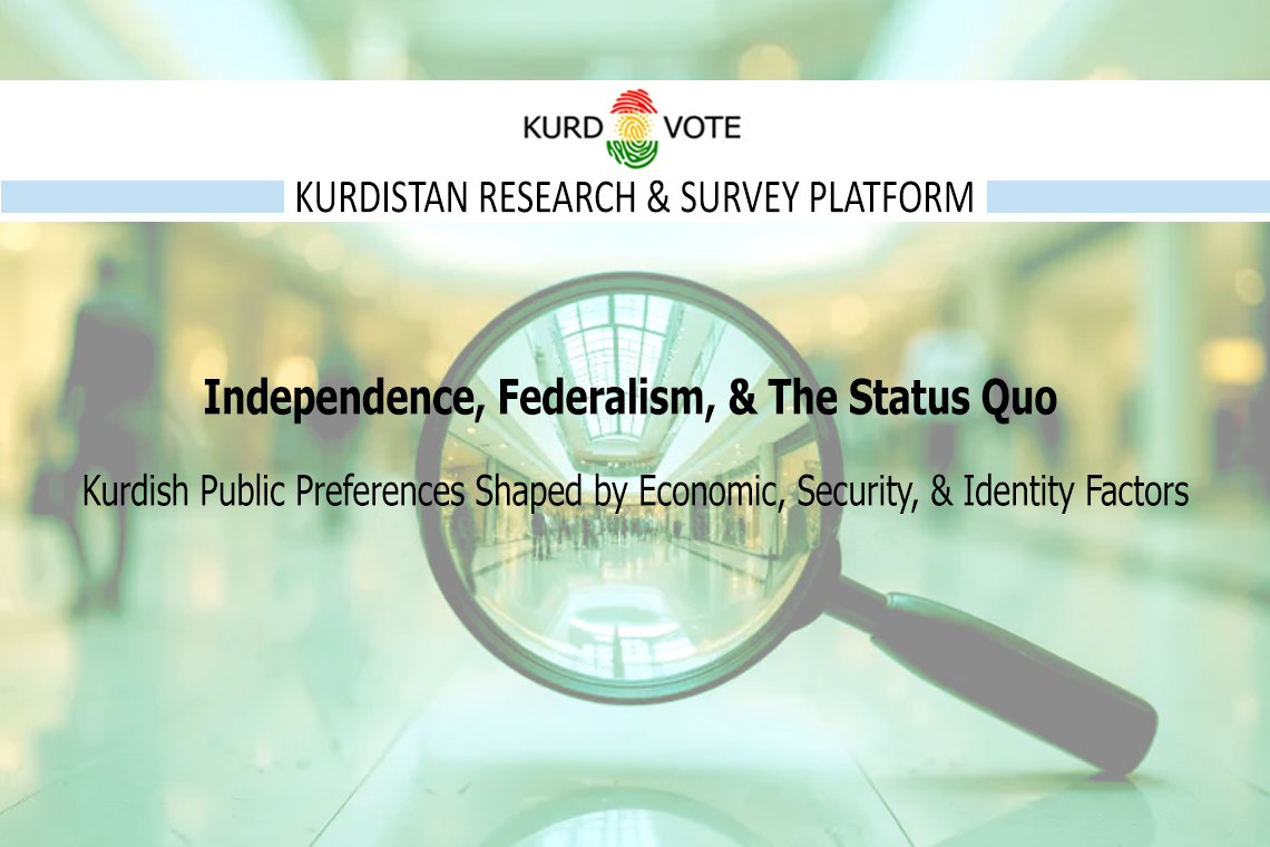 This study investigates how economic hardship, security risks, and identity attachments influence Kurdish public’s preferences regarding three possible governance arrangements: independence, federalism, or the continuation of the status quo. While the immediate focus lies in measuring public preferences, the broader ambition of the research is to connect these micro-level choices to macro-level debates about nation-building, institutional legitimacy, and the long-standing question of Kurdistan independence. In doing so, the study demonstrates how political attitudes in Kurdistan are shaped by the interplay of material conditions, perceived risks, and deeply rooted cultural identities.